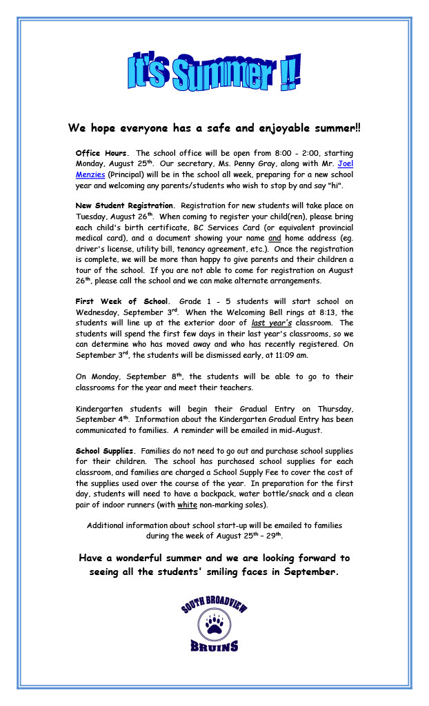 We Hope Everyone Enjoys a Wonderful Summer!!